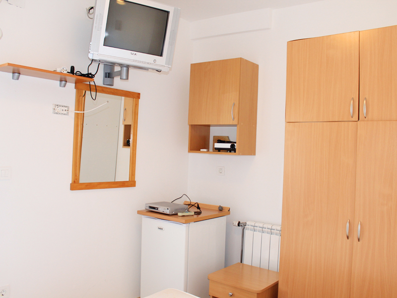 З 10 номерів студіо: кондиціонер,французьке або окремі ліжка, шафа, тумбочка, ТВ, туалет, душ, кухонний куток з необхідним посудом, балкон.