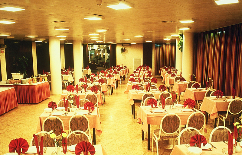 Головний ресторан розрахований на 150 гостей (критий, з кондиціонером), бар.