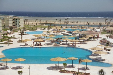Пляж на березі моря, довжина пляжної полоси 500м піщано – гальковий, вхід в море корали, рекомендується спеціальне взуття, шезлонги, матраси, парасольки, пляжні рушники, душ на пляжі – безкоштовно. Пункт видачі рушників – біля басейну та на пляжі.