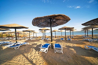 Пляж довжина пляжної полоси 100м,є понтон 400м, вхід в море – 3 м пісок, потім коралова корка, рекомендується спеціальне взуття.